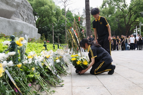 苍松翠柏,陵园肃穆。全体师生参观了广州起义纪念碑,瞻仰了广州公社烈士墓等,深入了解广州起义的历史背景、艰难历程及深远意义。全体师生在烈士纪念碑前整齐列队,肃立默哀,学生团员代表向革命烈士敬献花圈,表达对革命先烈的无限哀思和崇高敬意。