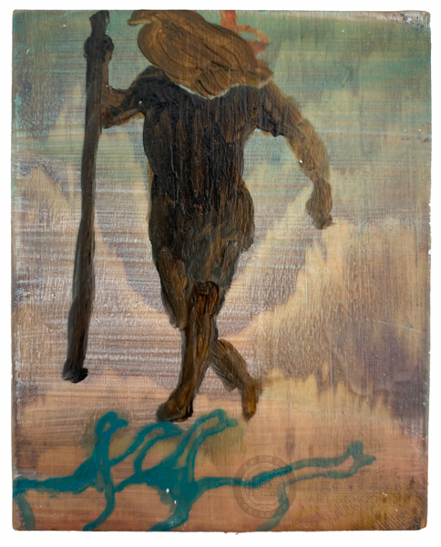 赶鹅 8cmx10cm 木板油画 2020年